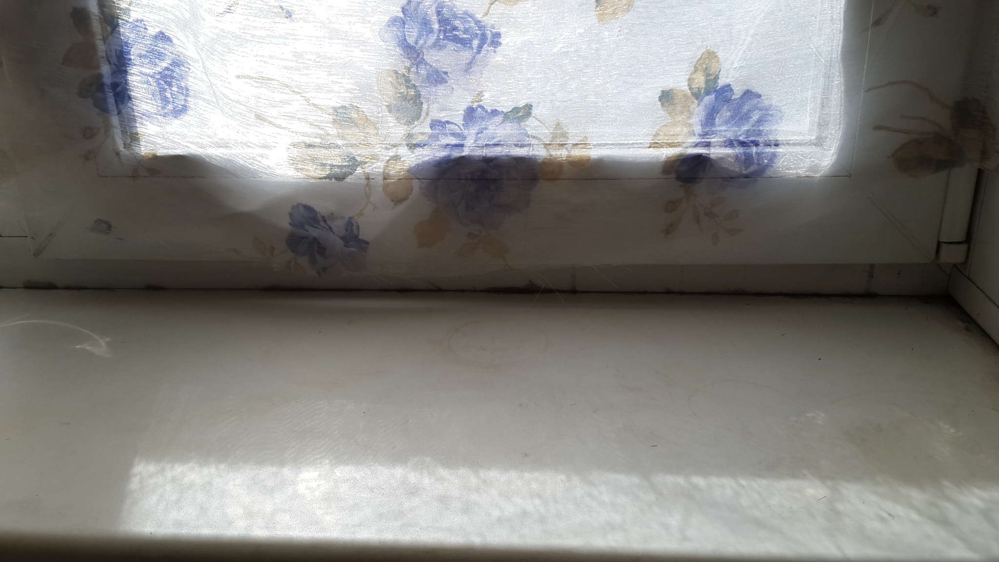 Причём, нижняя часть окна — полоской — не закрыта тюлью, так что прямые лучи попадают, но на горшки, что снижает риск слишком избыточного снижения освещённости.