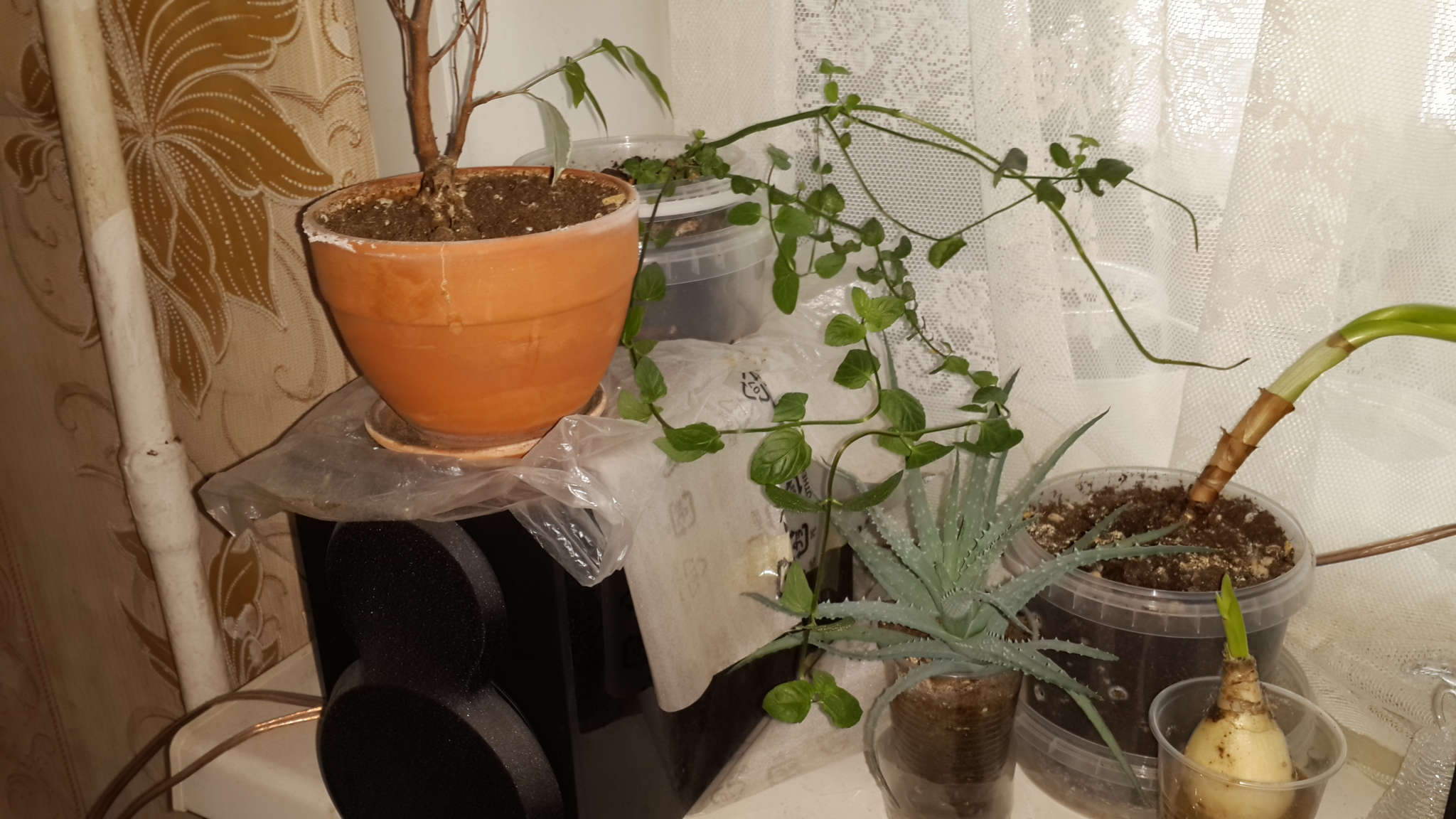 Полил. Занёс его в помещение. Из-за наличия Тли, промыл под душем с хозяйственным мылом. Некоторые листья наполовину покоричневели после процедуры (такое уже было с первым растением). Спустя время многие побеги восстановили тургор. Тли незаметно. Поставил растение на восточный (кухонный) подоконник — его постоянное место.