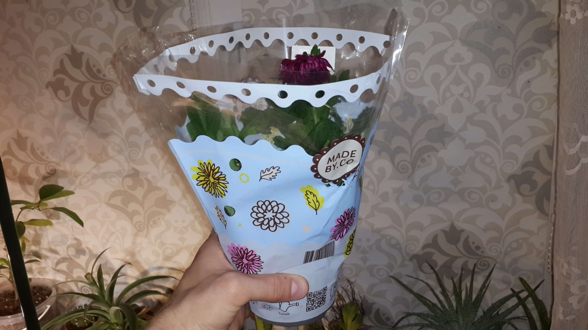 Упаковано в цветную конус-плёнку.