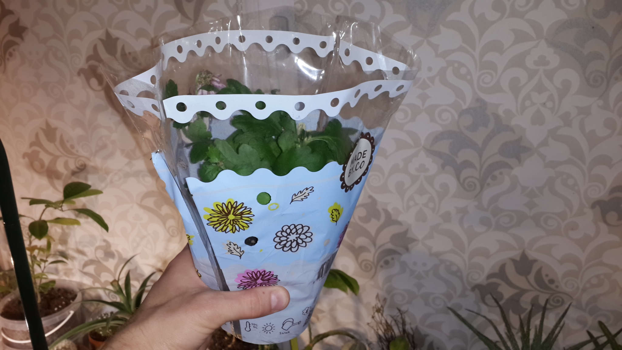 Упаковано в цветную конус-плёнку.