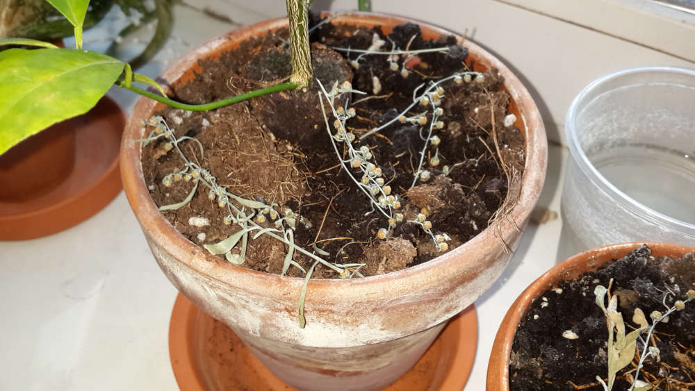 Начал использование Полыни горькой в качестве пестицида. Разложил небольшие веточки по поверхности субстрата.