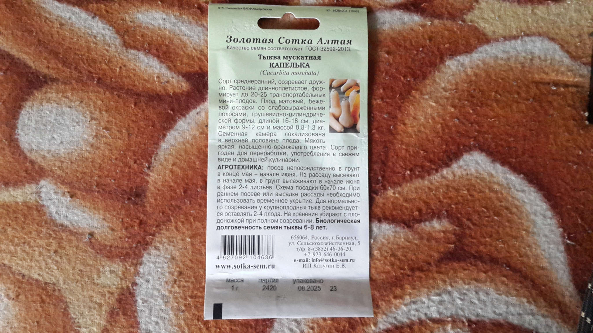 Семена. Дата фасовки: 08.2025.