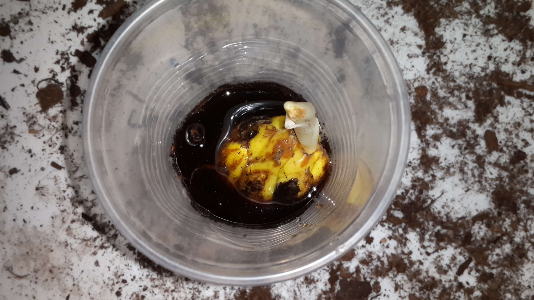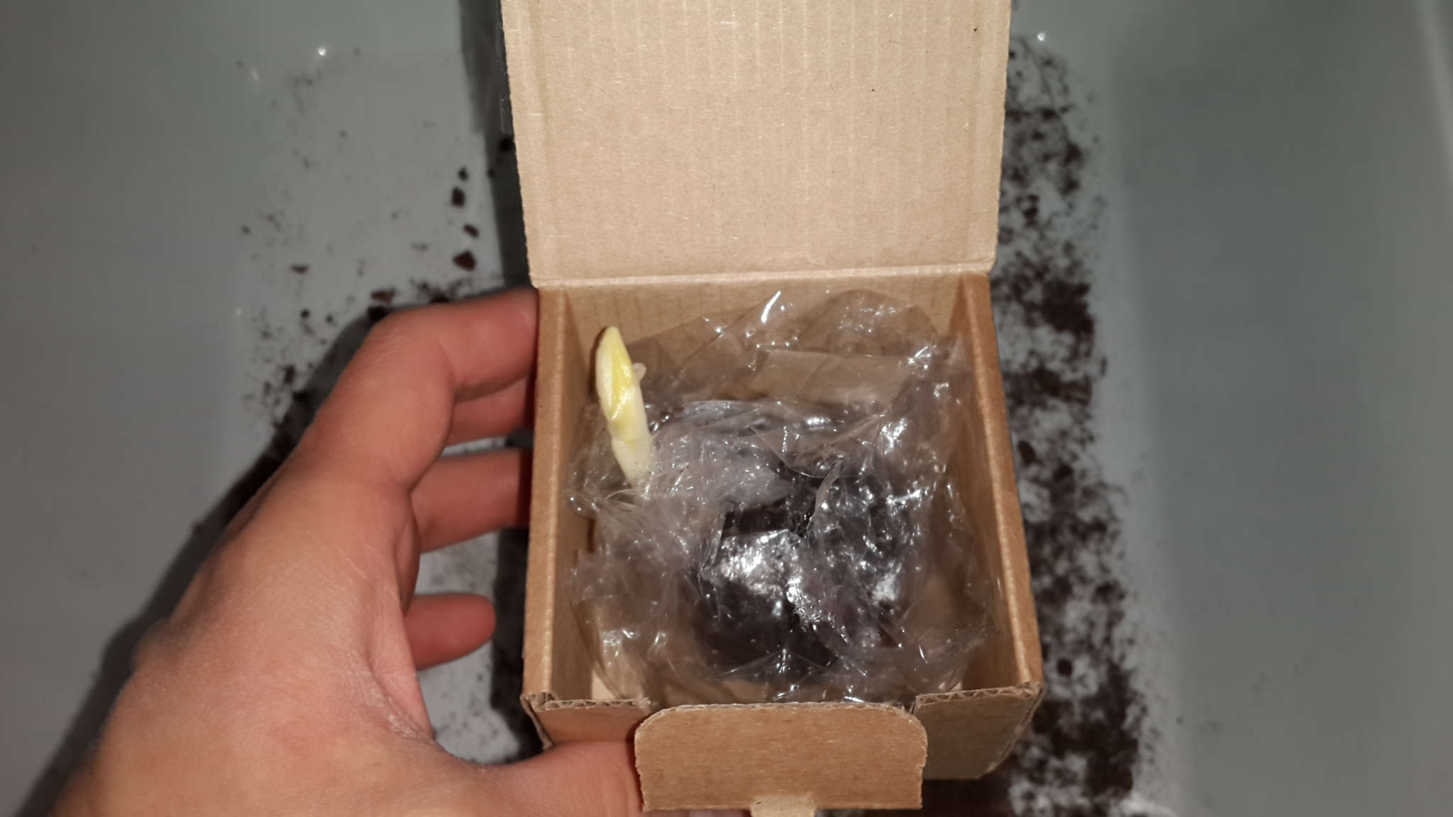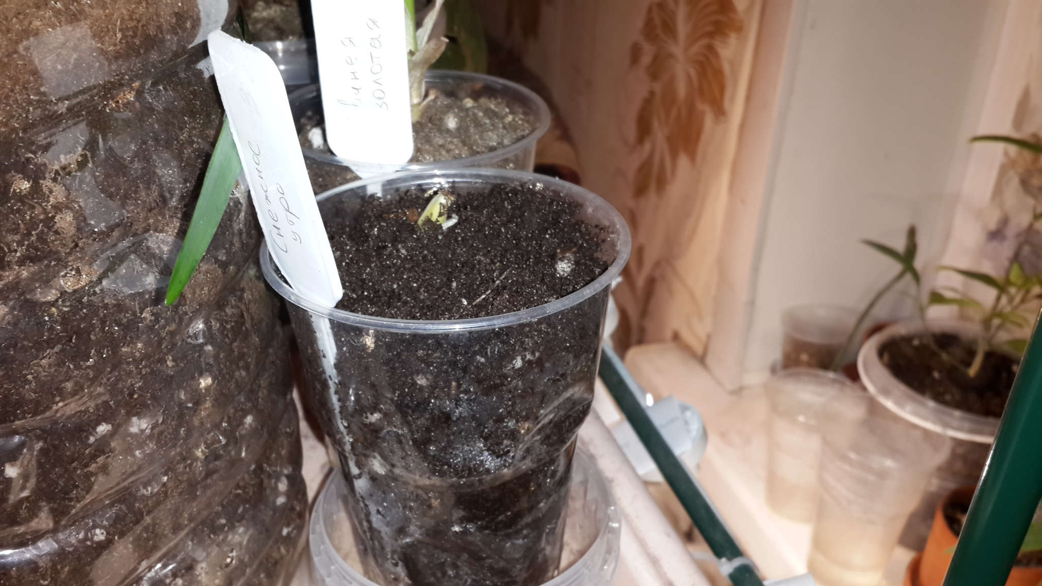 Растение показывает признаки роста. За ночь побег немножечко увеличился. Приобрёл салатовый оттенок.