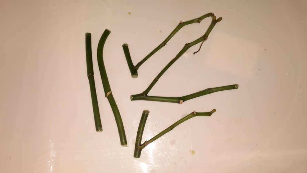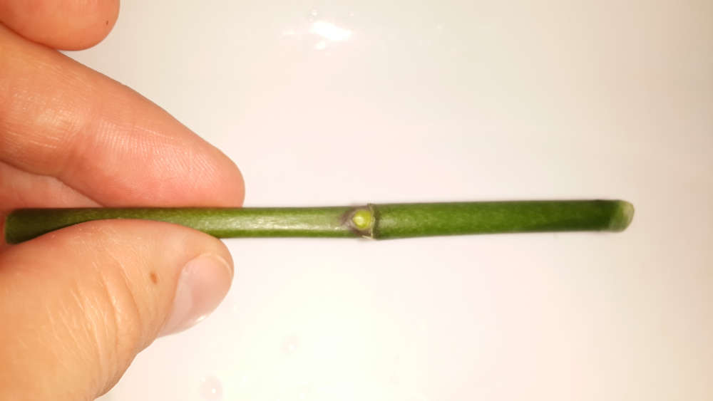 Срезал цветонос и разделил на части, каждая из которых содержит почку, при этом расстояние от почки до среза должно быть максимально возможным.