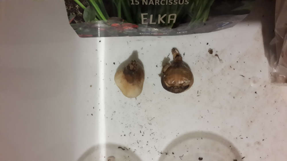 После завершения высадки всех луковиц всех сортов, решил поменять места посадки Нарцисса Элка с Нарциссом Мо энд Мо, поэтому выкопал все луковицы (несколько раз перебрал землю руками, проверив, что не осталось луковиц) и посадил на другое место.