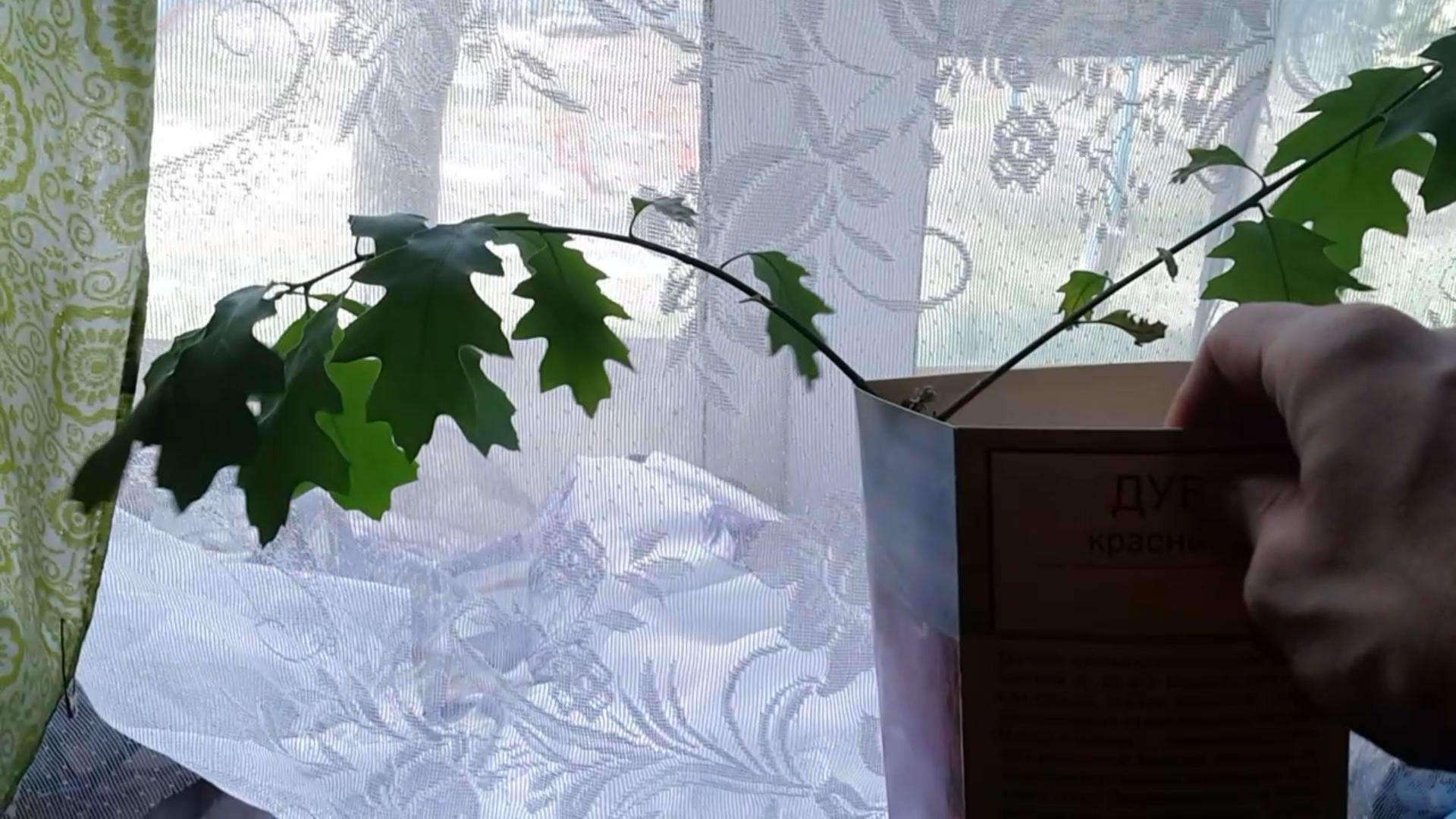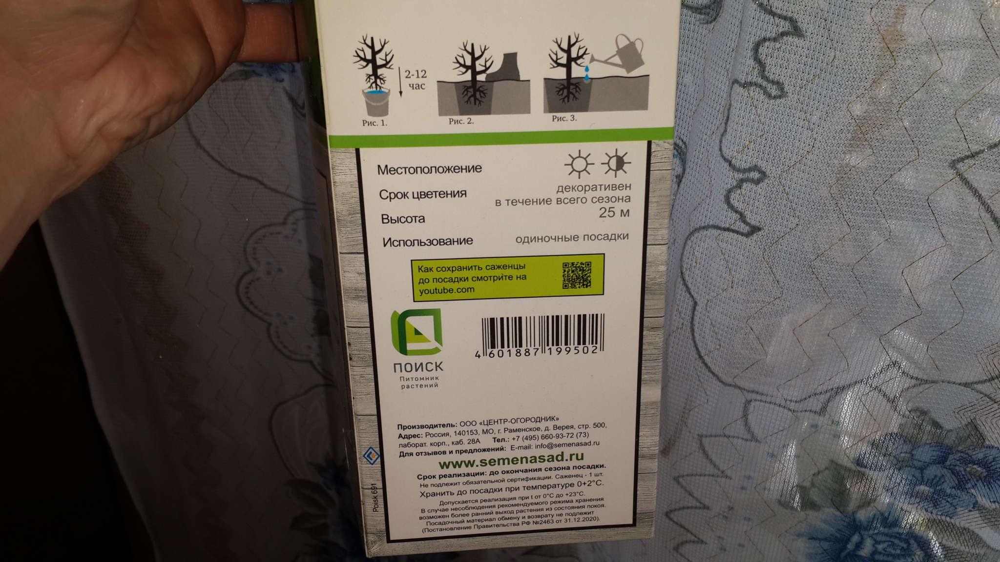 Саженец в хорошем состоянии. Листья слегка потеряли тургор, сухих нет. Два побега.