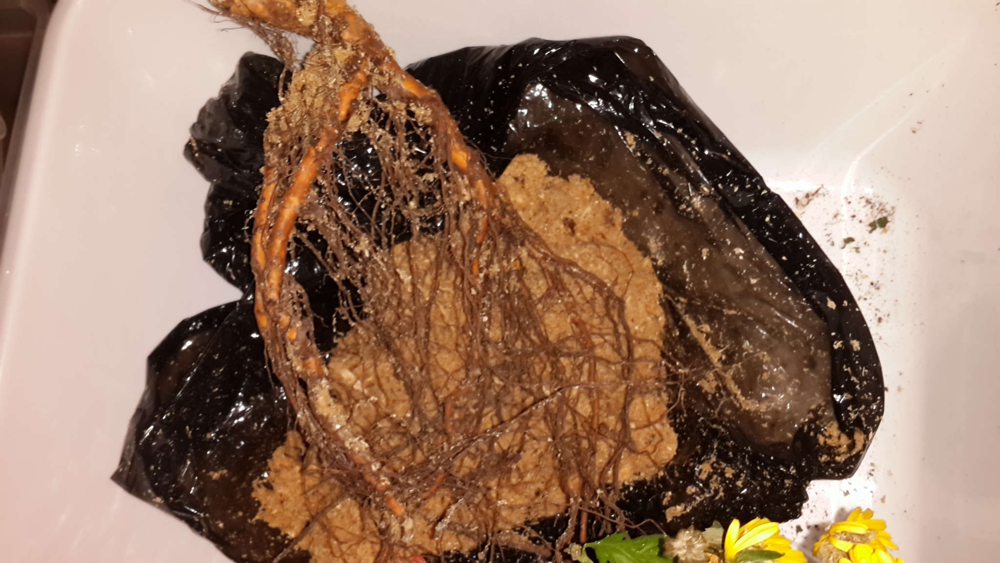 Корни находятся в субстрате из опилок, цель которого, вероятно, защита от пересыхания.
