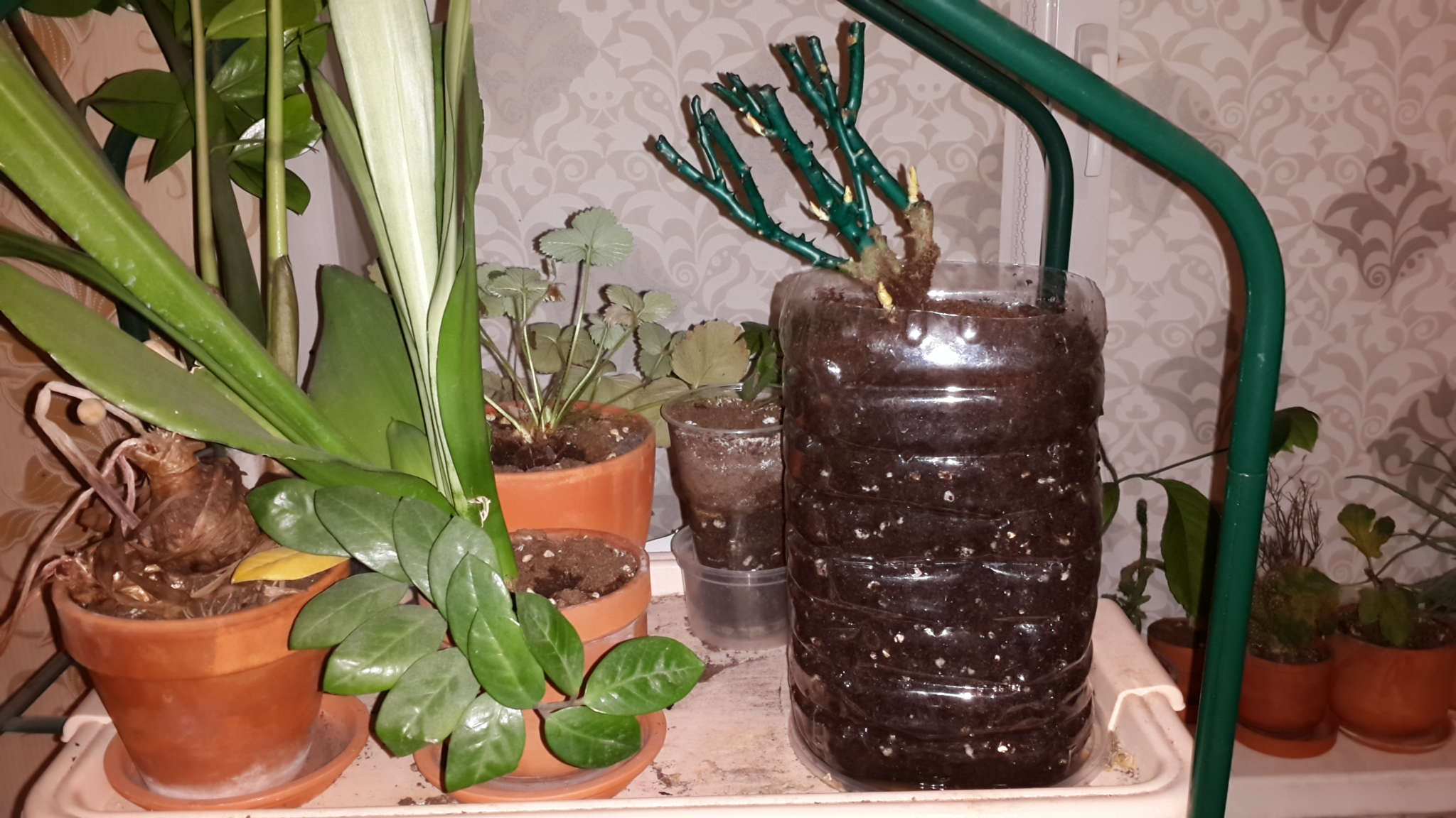 После размотки корни подрасправились и уже с трудом входили в дополнительный пакет, которым была снабжена упаковка (куда планировалось временно посадить растение), поэтому посадку осуществлял в контейнер, изготовленный из 5-и литровой бутыли (проделал в неё вентотверстия).