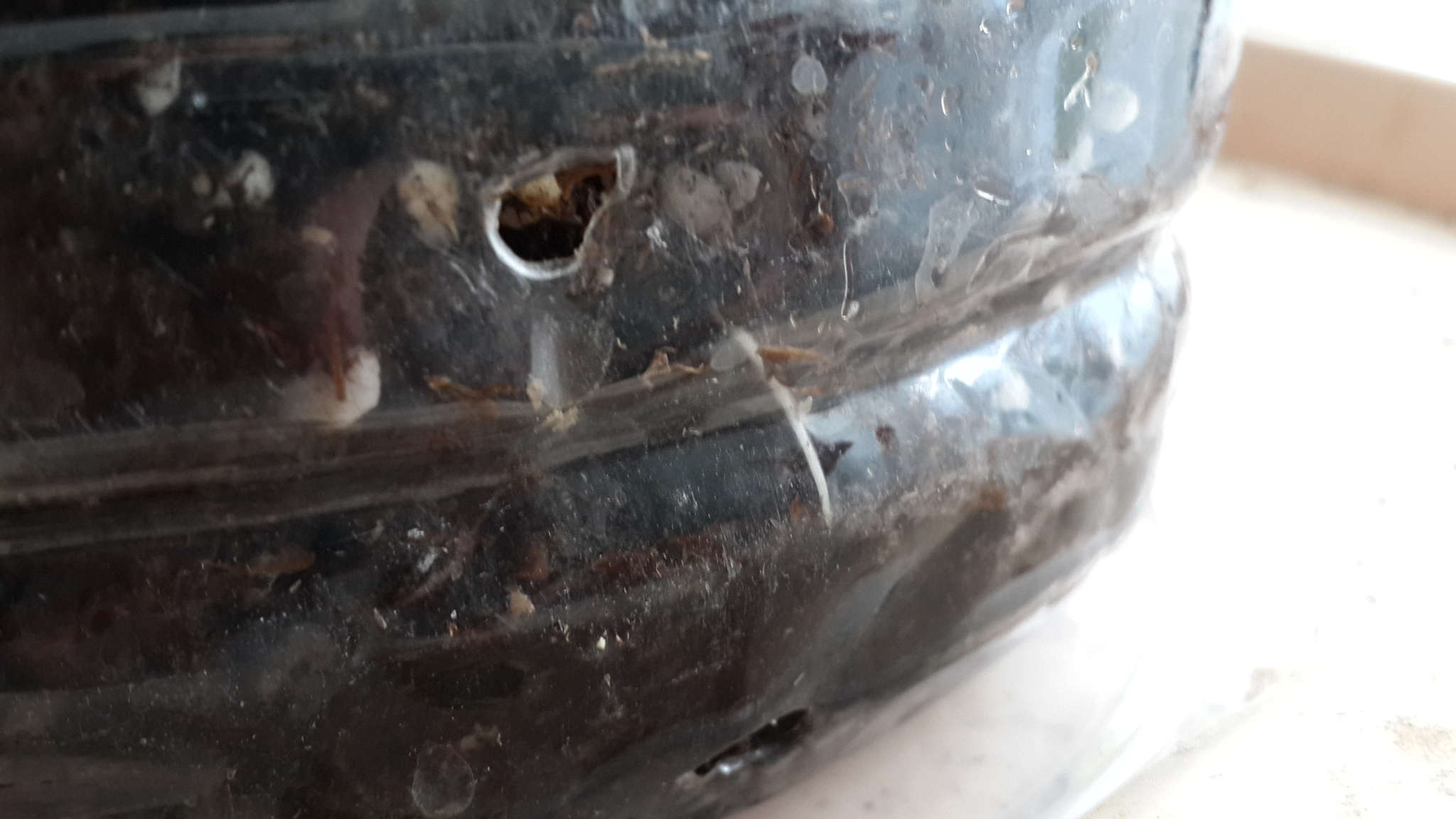 Первый полив. Небольшим количеством воды. С одной стороны, субстрат ещё не полностью сухой, с другой стороны пара листочков засохла, но они мелкие и возможно это связано с регулированием в самом растении; не стал рисковать возможным пересыханием.