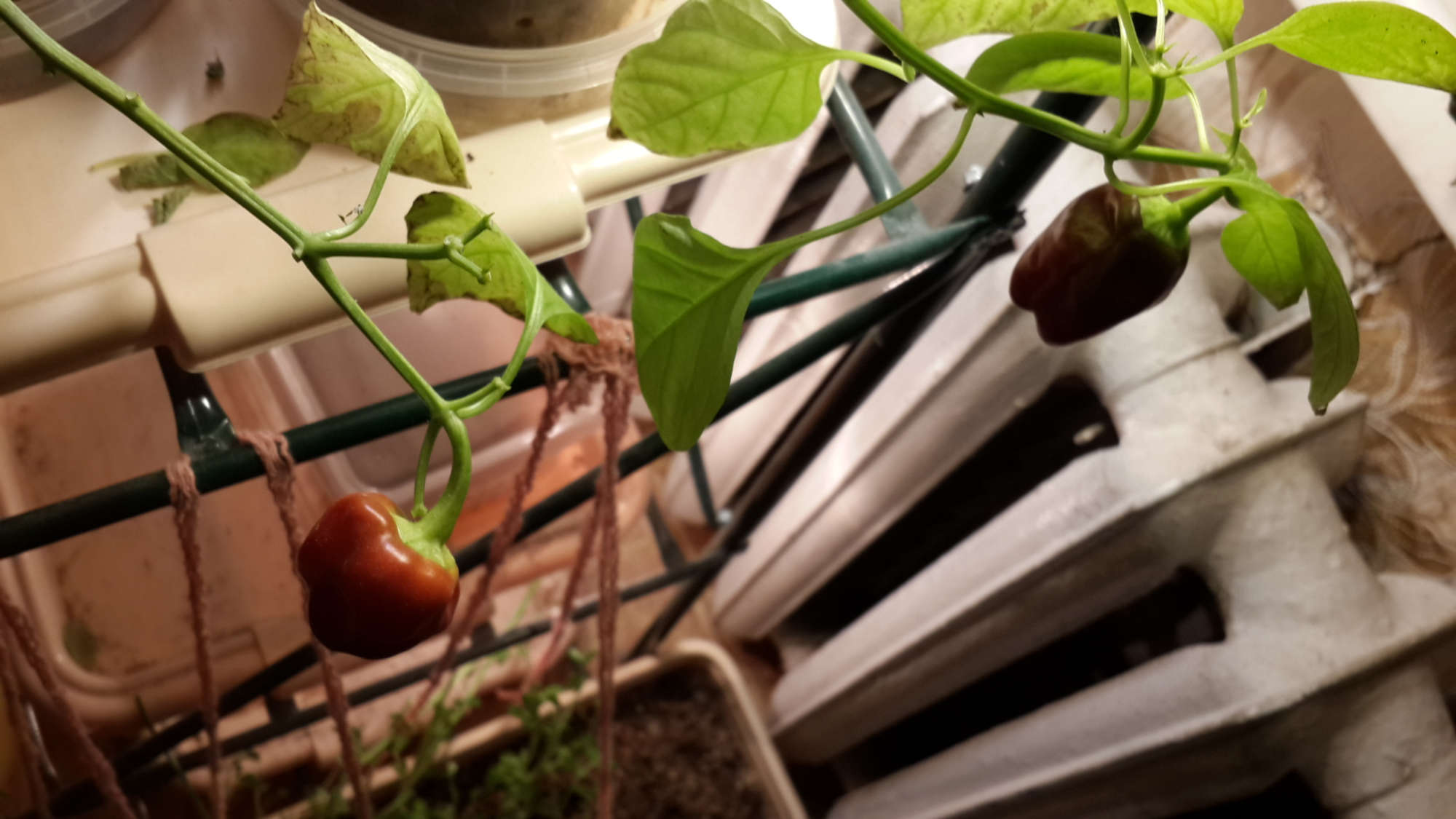 Перец сладкий Кузя. На улице становится холодно. Решил занести с балкона в помещение. Плюс обеспечил досвечивание.
