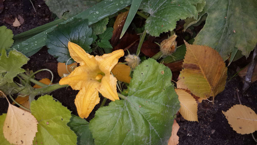 9 июля: первый цветок раскрылся у кабачка. Стояла холодная погода, возможно это стало фактором в развитии.