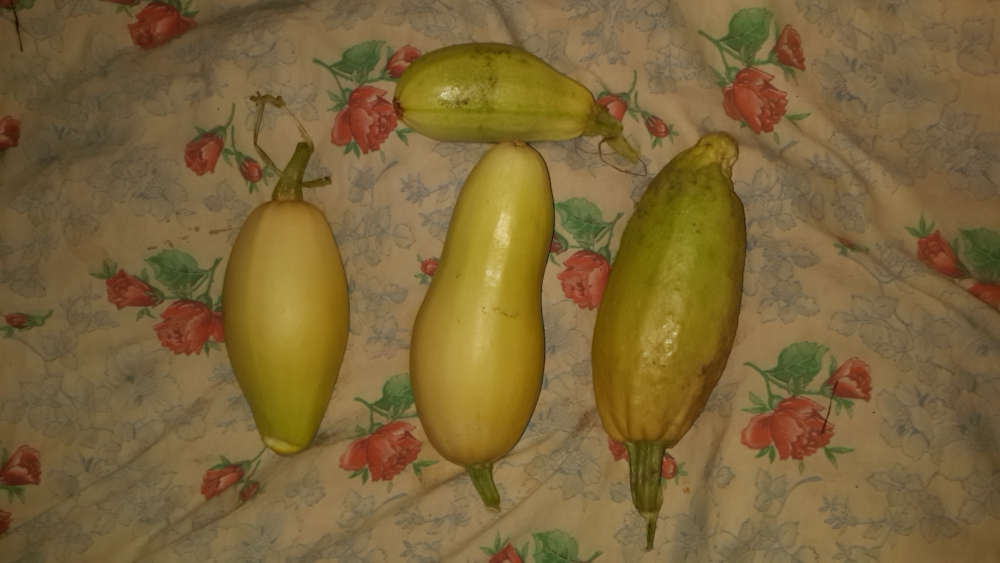 Небольшой — 4 плода, но он есть. На кустах ещё остались небольшое завязавшиеся плоды, формируются цветки (в основном мужские), но этим урожаем подводится итог сезону и опыту с данной культурой. Считаю его очень положительным. Цель, с которой изначально заводилась культура, — эффектное цветение — была достигнута превосходно.